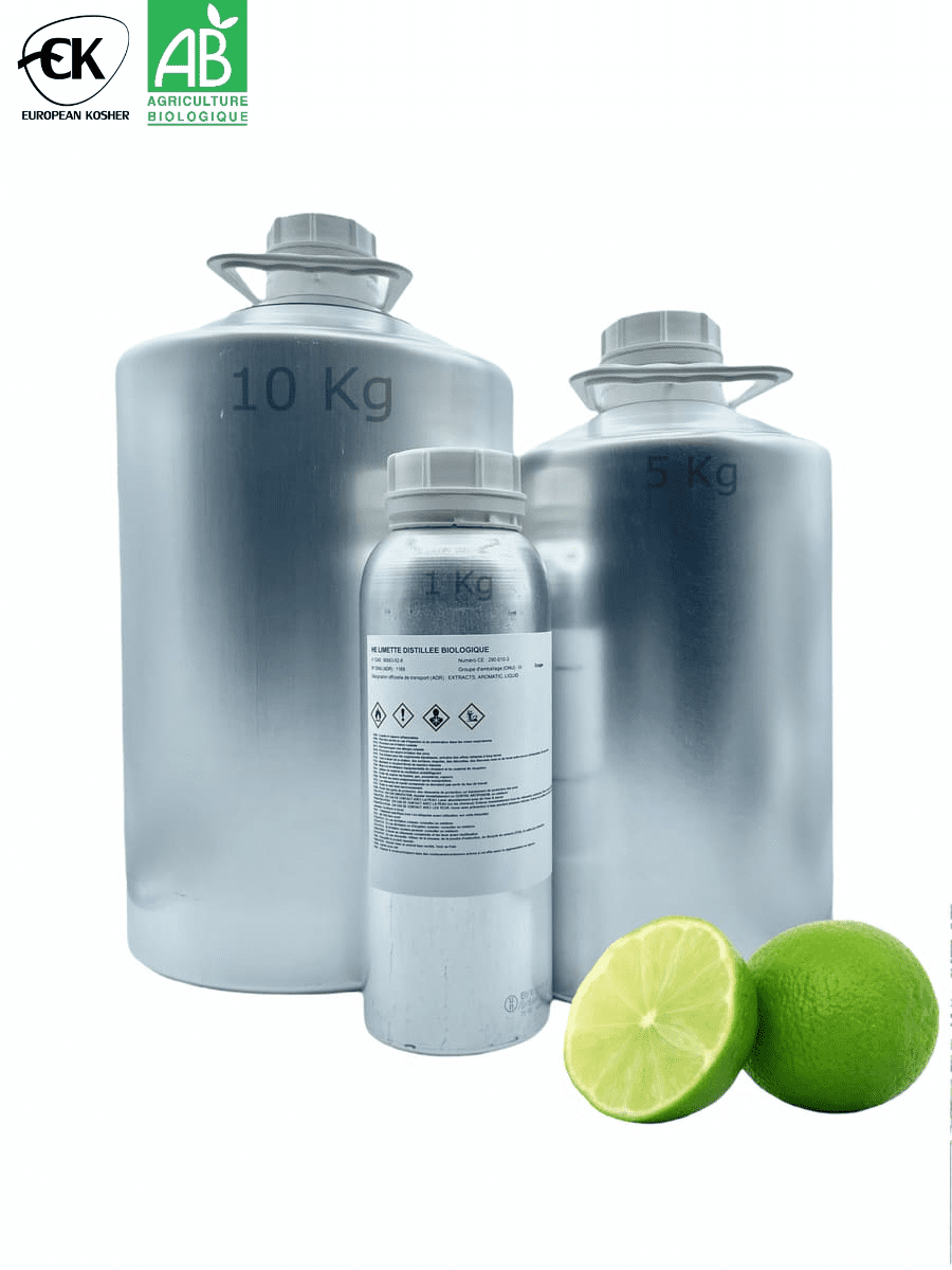 L’huile essentielle de Citron vert distillé biologique (Citrus aurantifolia), obtenue par distillation à la vapeur d’eau du péricarpe du fruit, est destinée aux professionnels des secteurs arôme, parfum, cosmétique et aromathérapie.