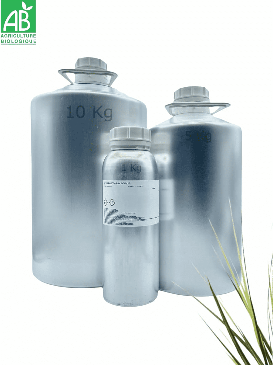 L’huile essentielle de Palmarosa biologique (Cymbopogon martinii), obtenue par distillation à la vapeur d’eau des parties aériennes, est utilisée par les professionnels des secteurs arôme, parfum, cosmétique et aromathérapie.